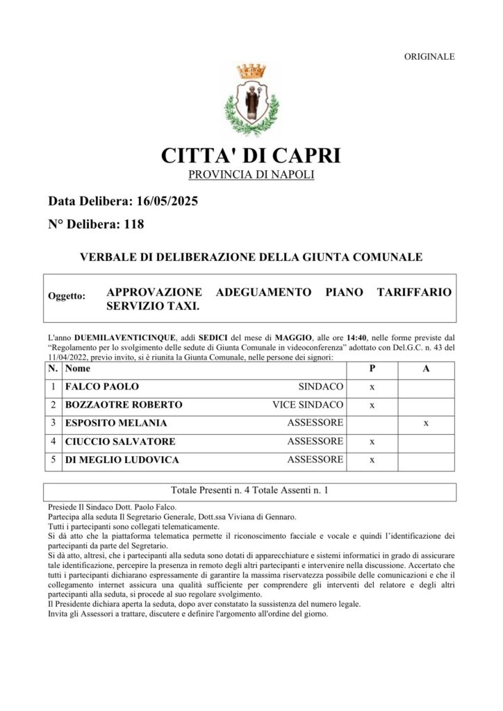 Amministrazione delibera nuove tariffe e servizi per i taxi . Arrivano i totem e qr code Il Giornale Notizie in tempo reale Politica Maggio 26, 2025Maggio 27, 2025Redazione Condividi su