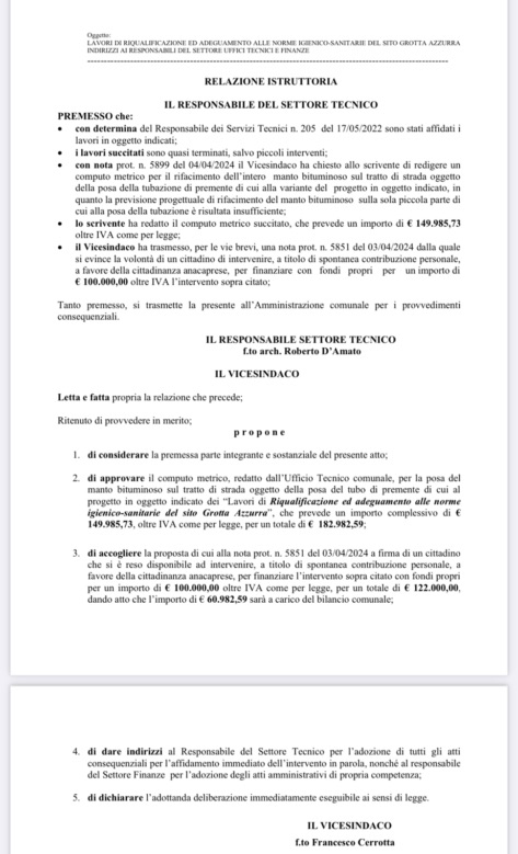 Anacapri: strada Grotta Azzurra un cittadino dona 122 mila euro per asfaltare la strada. Il Giornale Notizie in tempo reale Aprile 7, 2024RedazioneCommenta Anacapri: strada Grotta Azzurra un cittadino dona 122 mila euro per asfaltare la strada. Condividi su