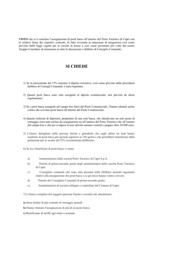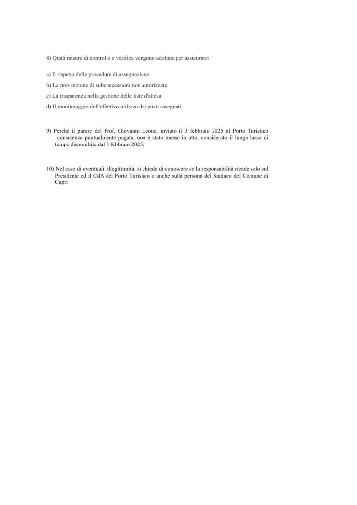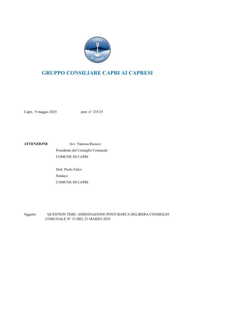 Assegnazioni posti barca al porto turistico e boe esterne del PTC: il caso finisce in Consiglio Comunale. Il Giornale Politica Maggio 15, 2025Maggio 15, 2025Redazione Condividi su