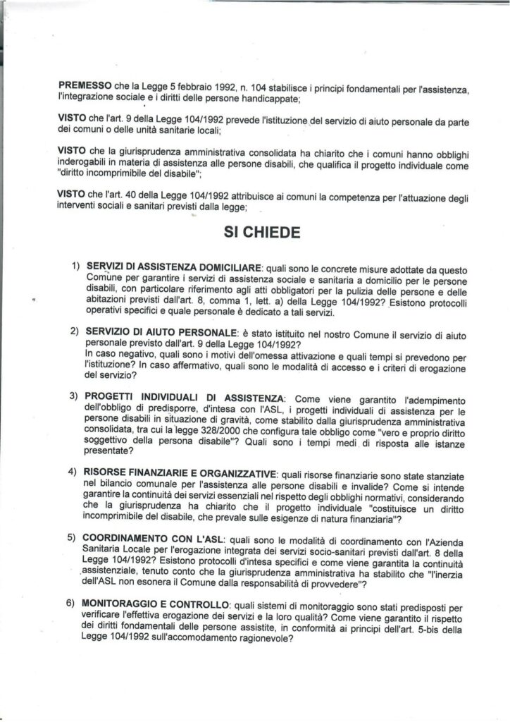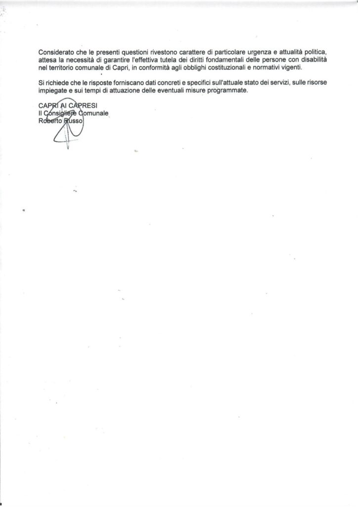 Assistenza alle persone con disabilità: Roberto Russo deposita un question time in Consiglio comunale. Ecco i vari punti. Il Giornale Notizie in tempo reale Luglio 13, 2025Luglio 14, 2025Redazione Condividi su