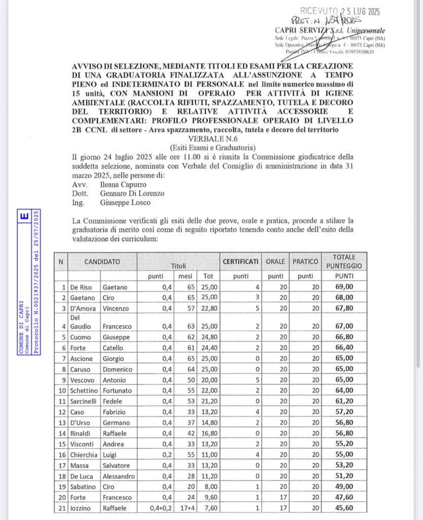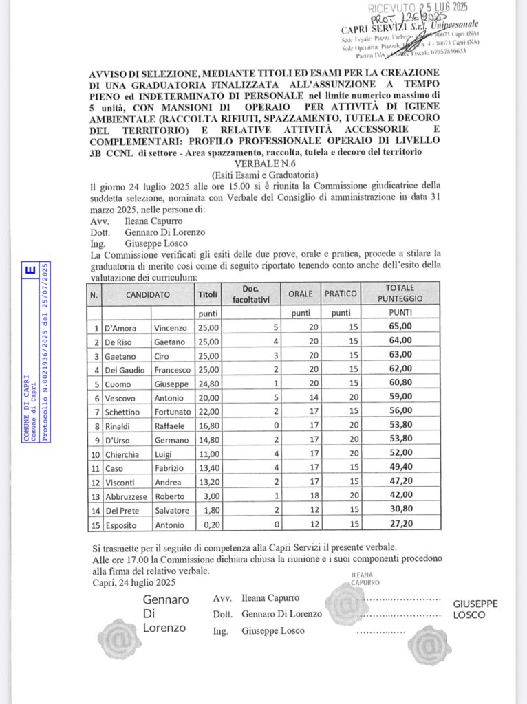 Capri Servizi: esito dell’avviso di selezione. Il Giornale Notizie in tempo reale Luglio 26, 2025Redazione Ecco gli esiti delle selezioni del personale. Condividi su