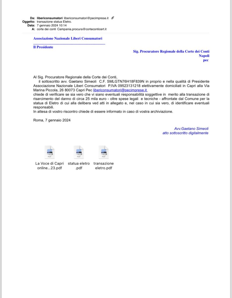 Esposto Corte dei Conti statua Eletro Notizie in tempo reale Gennaio 7, 2024Gennaio 7, 2024RedazioneCommenta Esposto Corte dei Conti statua Eletro Condividi su