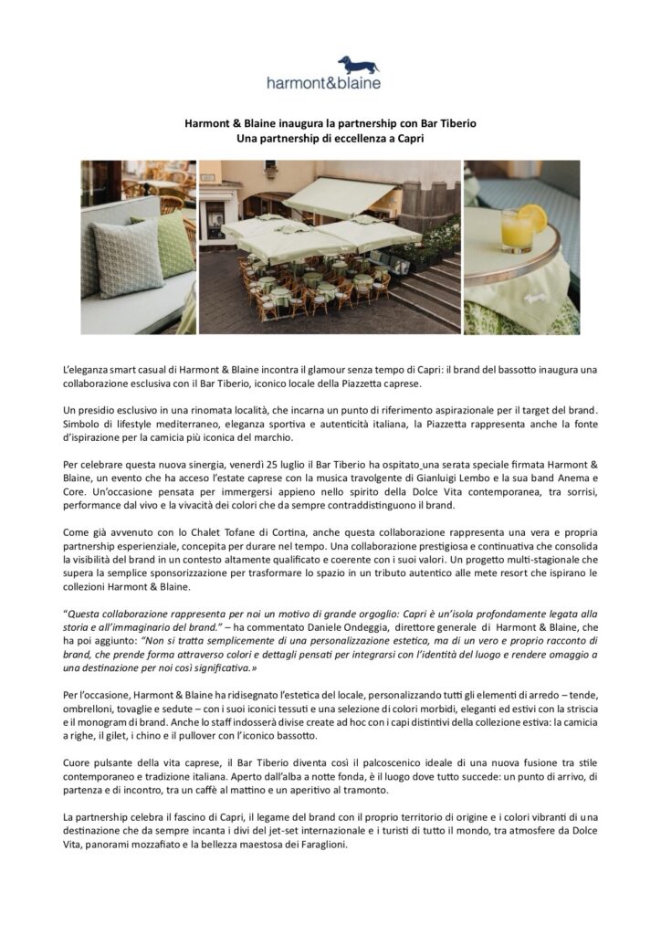 Harmont & Blaine Capri e Bar Tiberio Il Giornale Notizie in tempo reale Luglio 29, 2025Redazione Condividi su