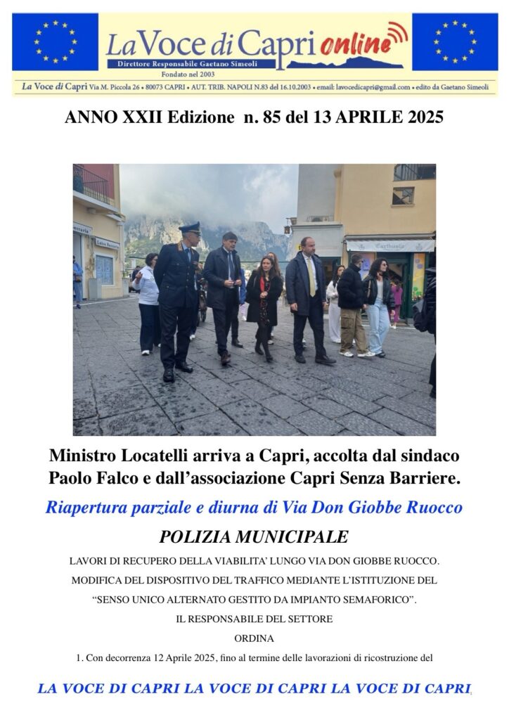 La Voce di Capri Il Giornale Notizie in tempo reale Aprile 12, 2025Aprile 12, 2025Redazione Condividi su