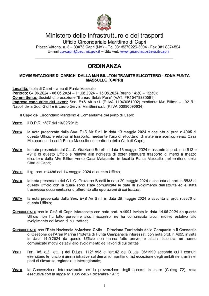 Lavori con elicottero con motonave Billton ecco l’ordinanza di Circomare Capri Il Giornale Notizie in tempo reale Giugno 4, 2024Giugno 4, 2024RedazioneCommenta Lavori con elicottero con motonave Billton ecco l’ordinanza di Circomare Capri Condividi su