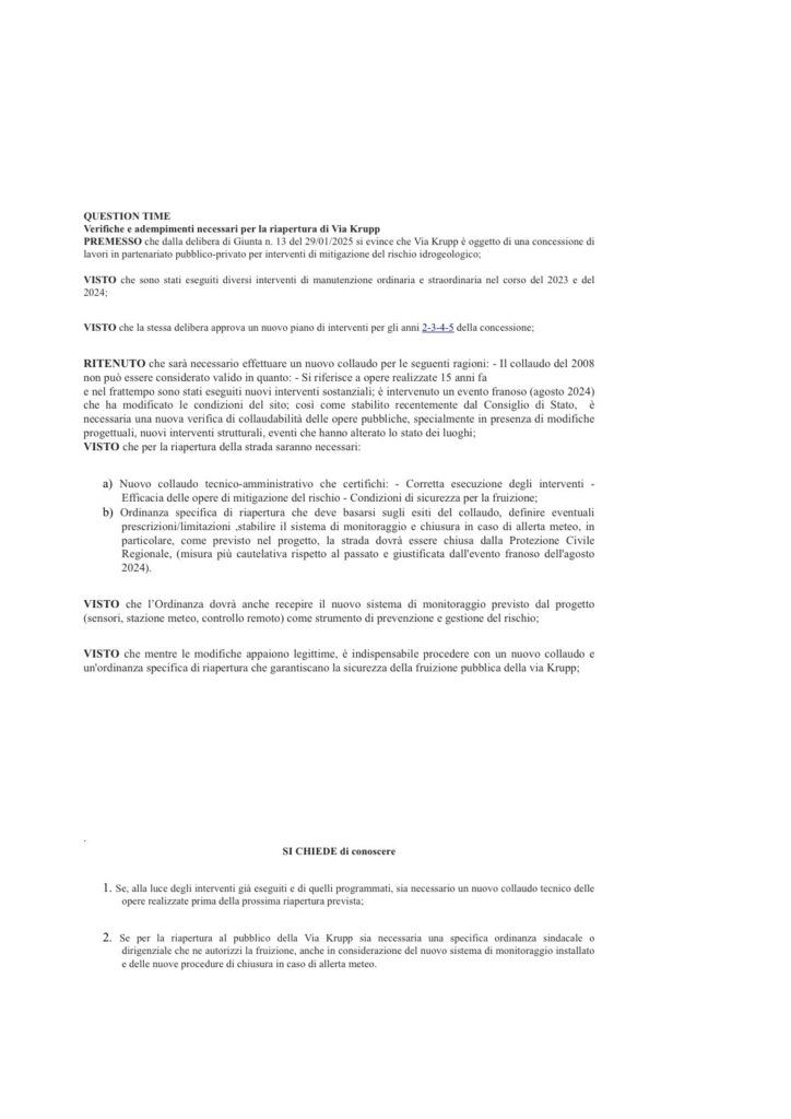 Lavori Via Krupp: riceviamo e pubblichiamo Il Giornale La Piazzetta Notizie in tempo reale Politica Febbraio 4, 2025Redazione Condividi su