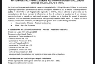 Regione Campania: pubblicato sul Burc Campania il Bando trasporto merci notturne per Capri .