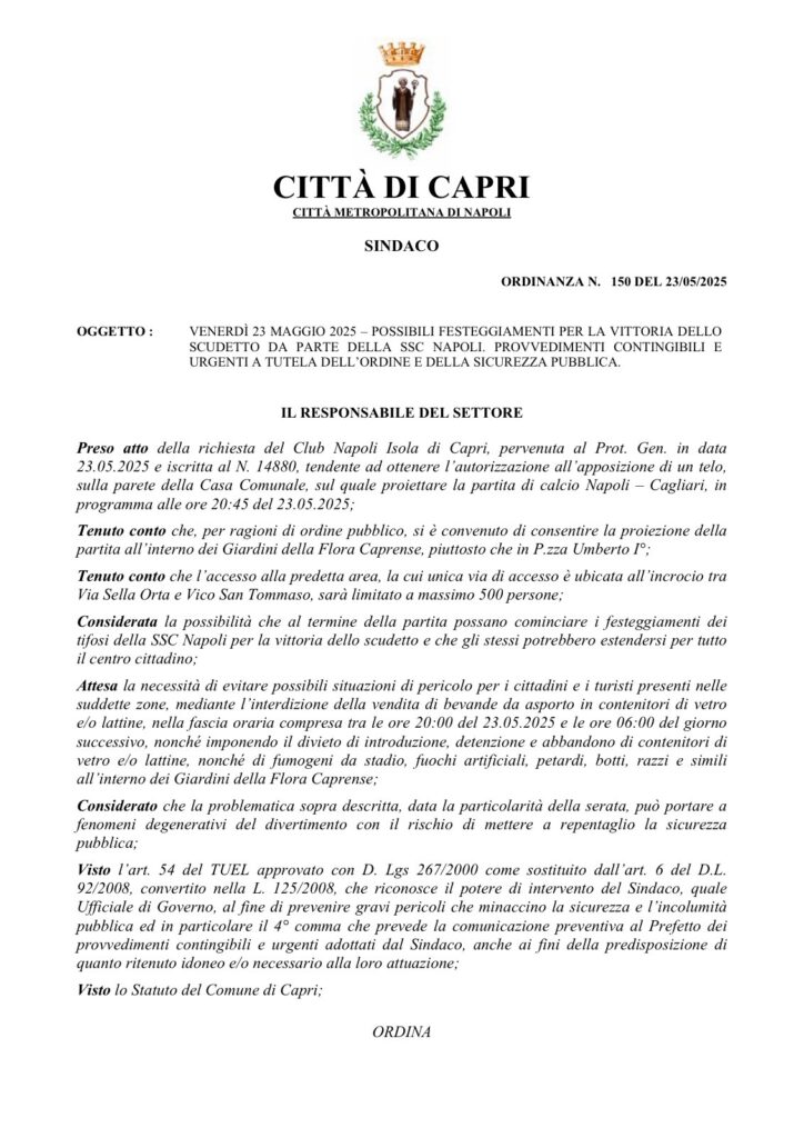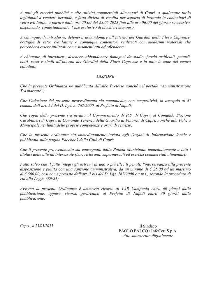 Ordinanza del Sindaco di Capri Il Giornale Notizie in tempo reale Maggio 23, 2025Redazione Condividi su
