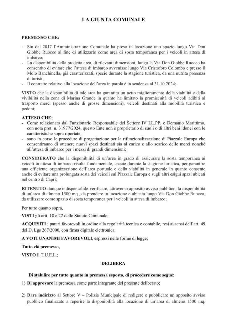 PROPOSTA DI INDIVIDUAZIONE DI UN’AREA, LUNGO VIADON GIOBBE RUOCCO, DA UTILIZZARE COME SOSTATEMPORANEA DI VEICOLI IN ATTESA DI IMBARCO. Il Giornale Notizie in tempo reale Novembre 20, 2024Redazione Condividi su