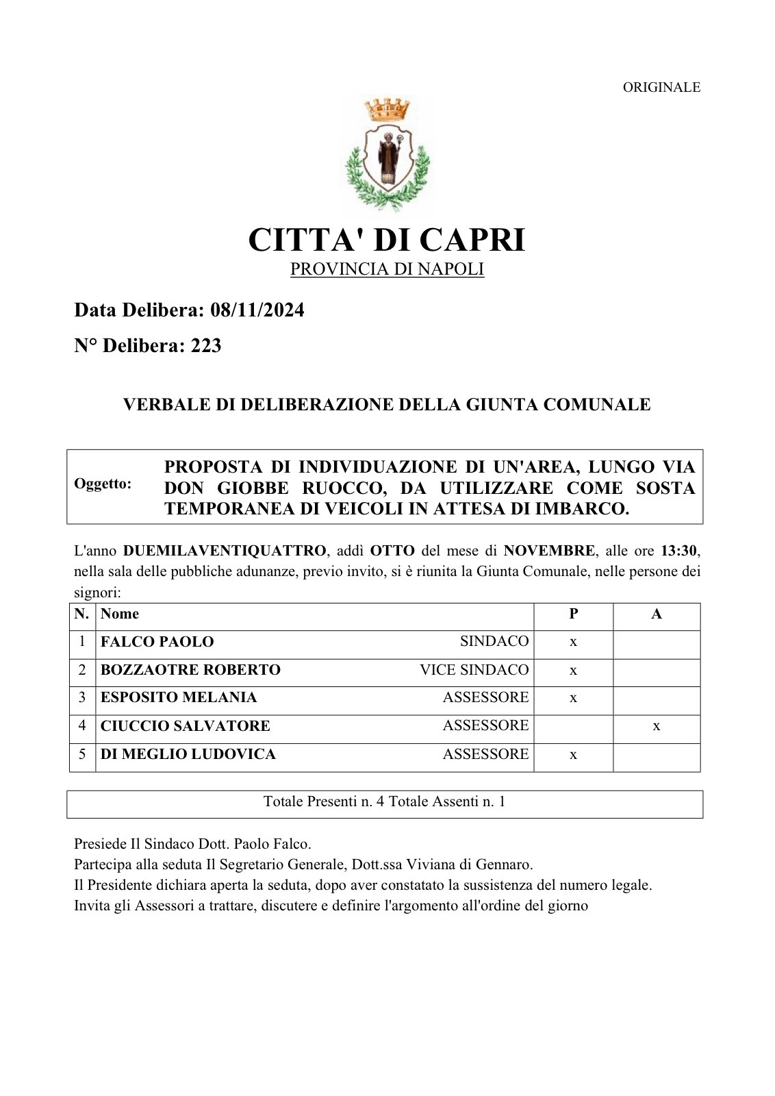 PROPOSTA DI INDIVIDUAZIONE DI UN’AREA, LUNGO VIADON GIOBBE RUOCCO, DA UTILIZZARE COME SOSTATEMPORANEA DI VEICOLI IN ATTESA DI IMBARCO.