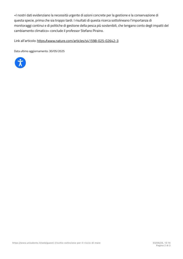 Rischio estinzione per il riccio di mare Il Giornale Notizie in tempo reale Giugno 3, 2025Redazione Condividi su