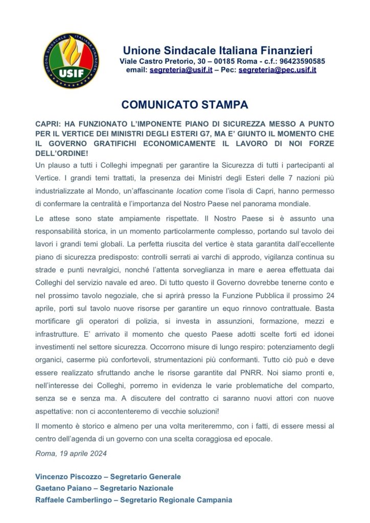 Sindacato Guardia di Finanza Il Giornale La Piazzetta Notizie in tempo reale Politica Aprile 19, 2024RedazioneCommenta Sindacato Guardia di Finanza Condividi su