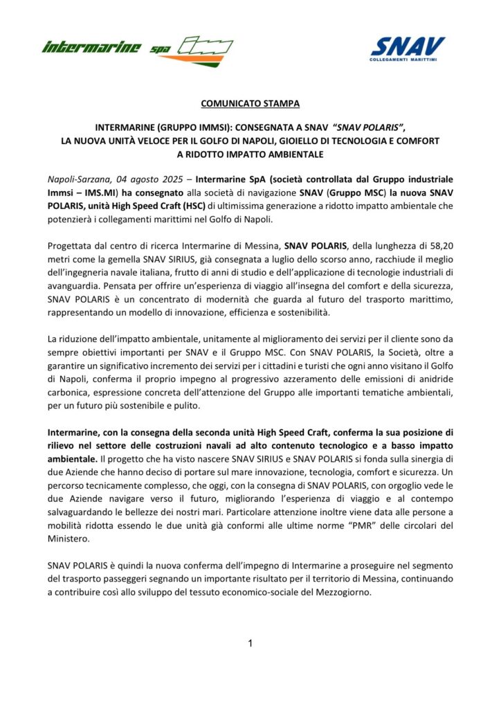 Snav arriva Polaris Il Giornale Notizie in tempo reale Agosto 6, 2025Agosto 6, 2025Redazione Condividi su