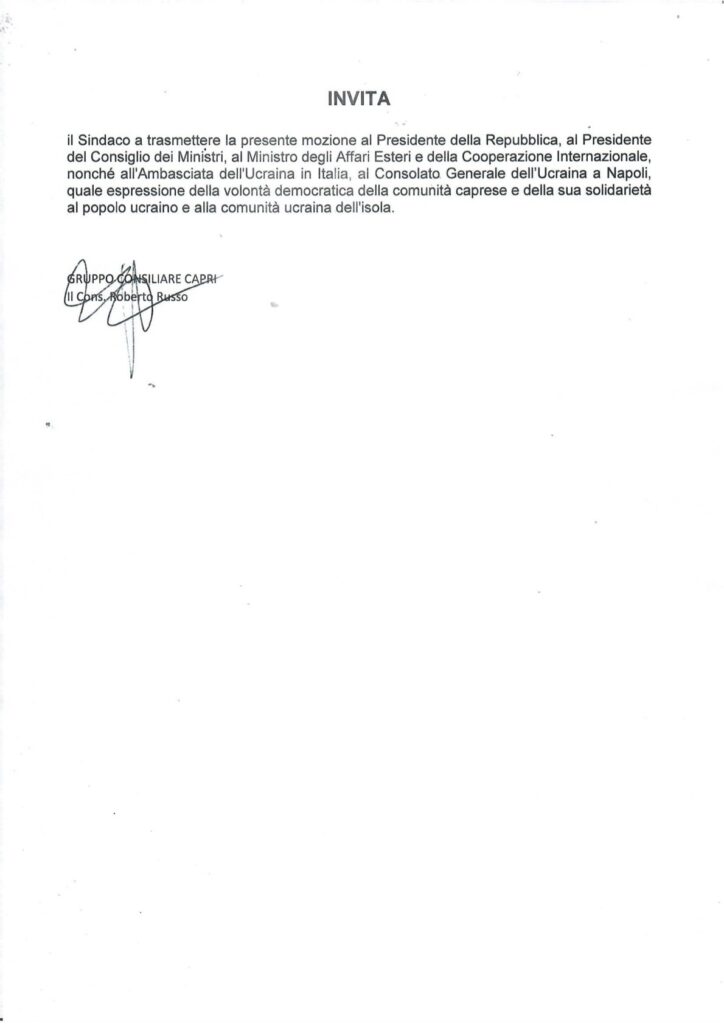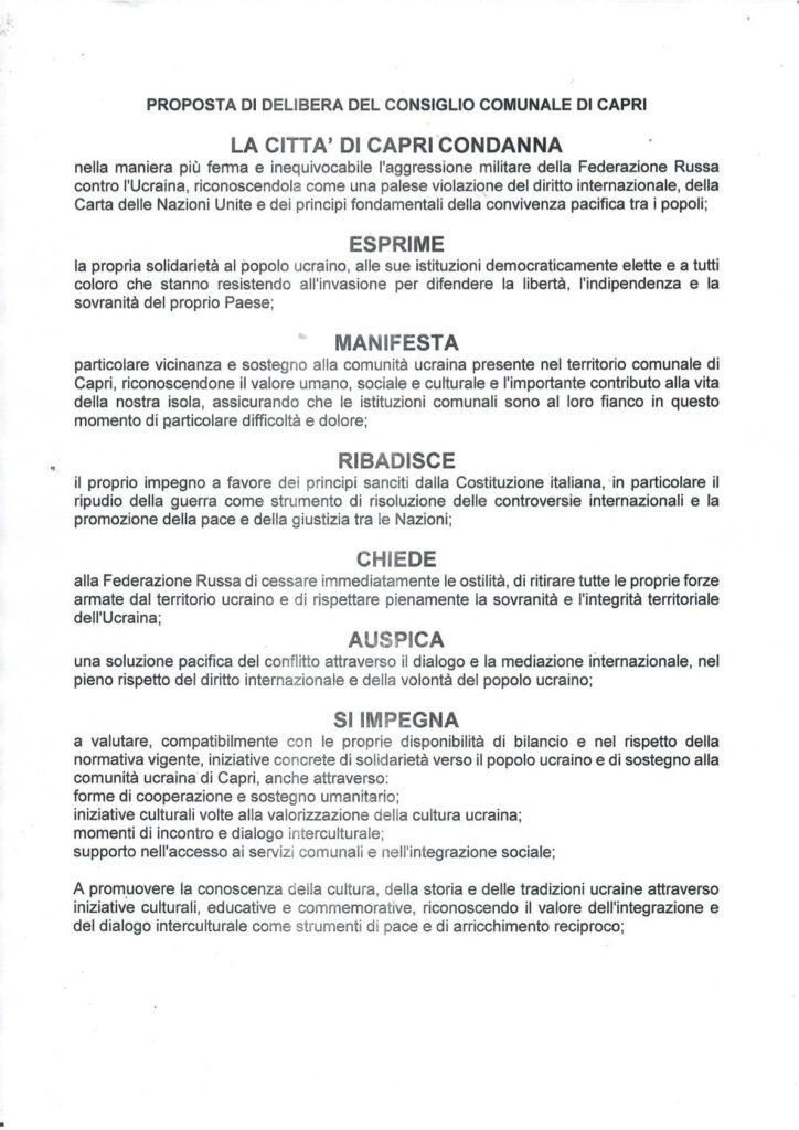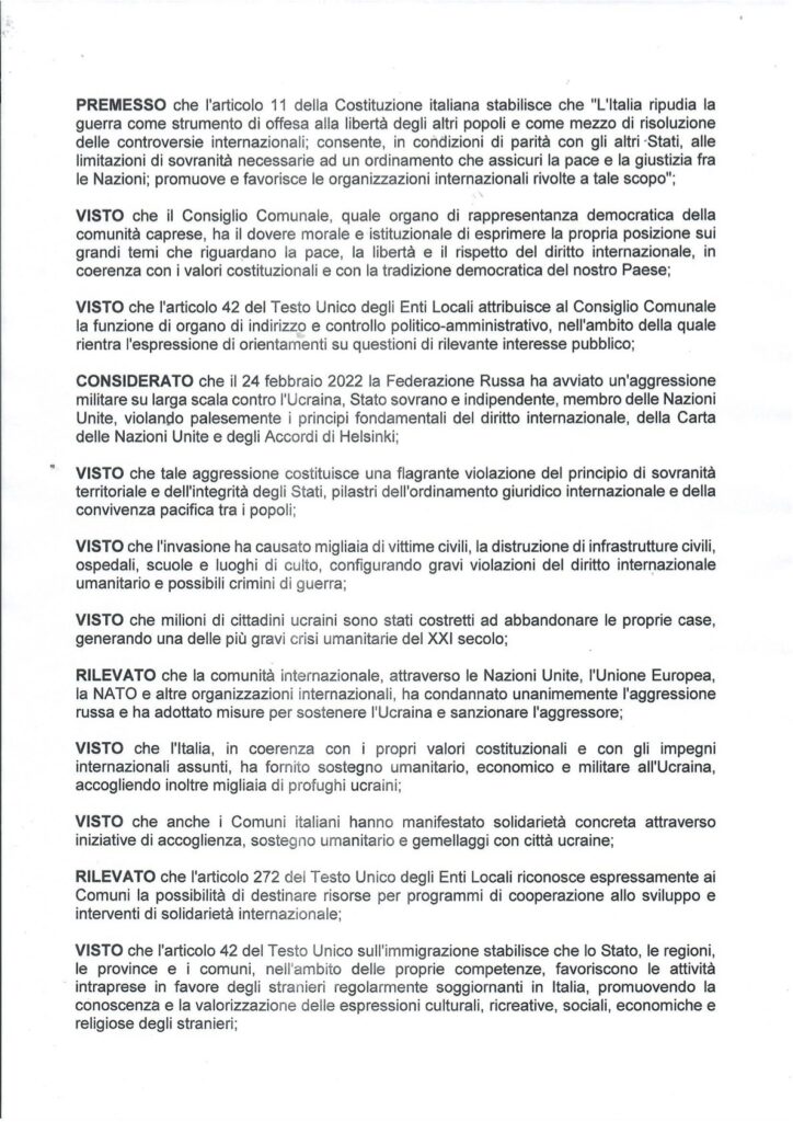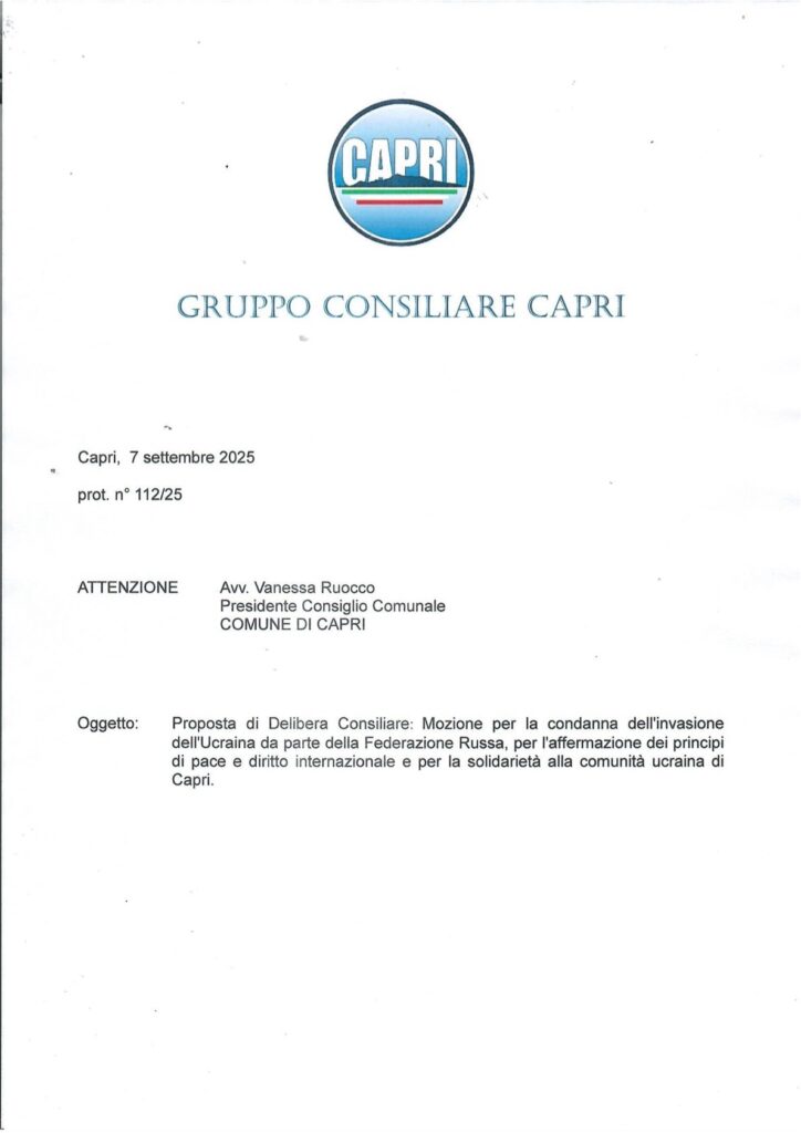 Ucraina: il Gruppo Capri deposita una mozione in Consiglio Comunale. Il Giornale Notizie in tempo reale Settembre 7, 2025Redazione Ecco il testo: Condividi su