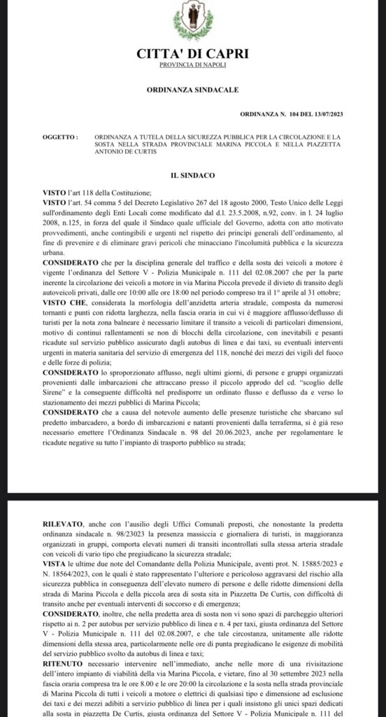 Via Marina Piccola Il Giornale La Piazzetta Notizie in tempo reale Settembre 3, 2023Settembre 3, 2023RedazioneCommenta Via Marina Piccola Stamattina diversi autobus e minivan a noleggio e motorini transitano sulla via Marina Piccola? Come mai ? L’ordinanza non è più valida ? Chieste verifiche al Sindaco di Capri Marino Lembo ed al Comandante della Polizia Locale Daniele De Marini. Condividi su